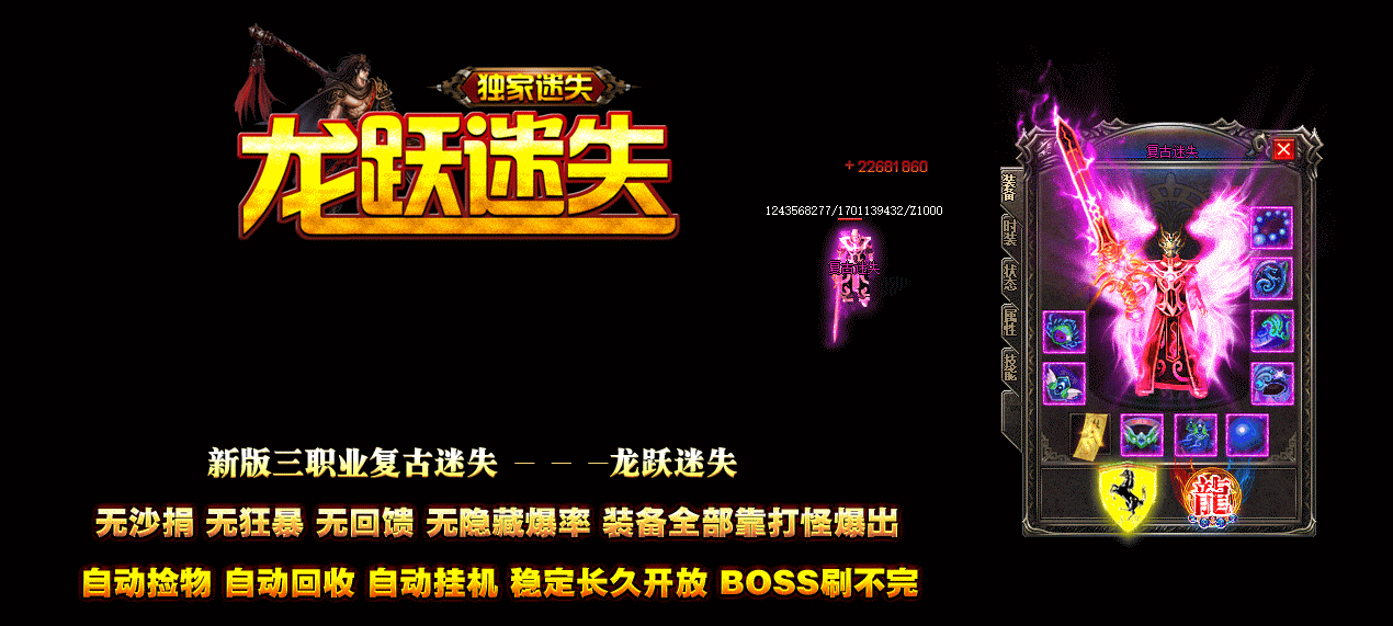 【游戏特色】: 本服无任何消费陷阱-散人游戏激情两不误-经典耐玩-请玩家放心游戏-!